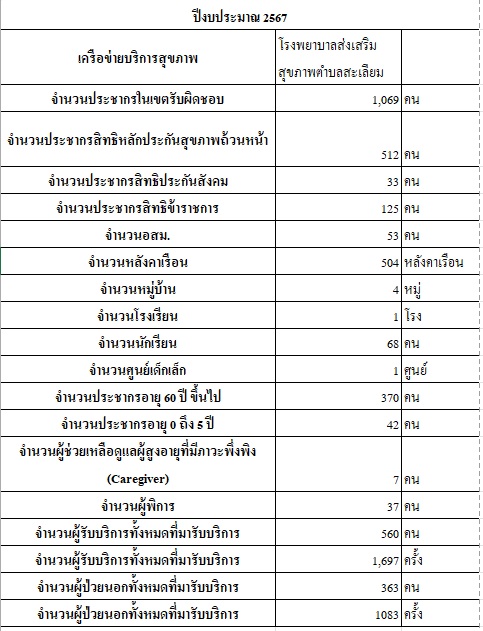 ข้อมูลทั่วไปของรพสต. Posted on 13/02/202329/02/2024 by admin ข้อมูลพื้นฐานของโรงพยาบาลส่งเสริมสุขภาพตำบลสะเลียมปีงบประมาณ 2566 data1ดาวน์โหลด ข้อมูลพื้นฐานของโรงพยาบาลส่งเสริมสุขภาพตำบลสะเลียมปีงบประมาณ 2567