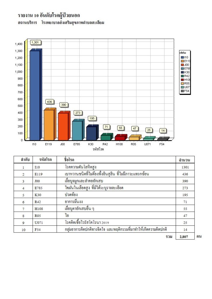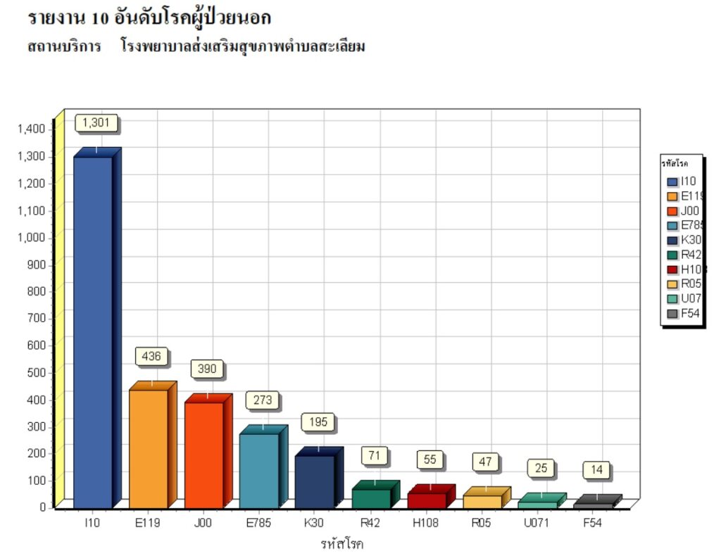 ข้อมูลเจ็บป่วยเบื้องต้น Posted on 13/02/202329/02/2024 by admin ข้อมูลผู้ป่วยของโรงพยาบาลส่งเสริมสุขภาพตำบลสะเลียม ในเบื้องต้นตามการวินิจฉัยโรค 10 อันดับแรกของ ปีงบประมาณ 2566